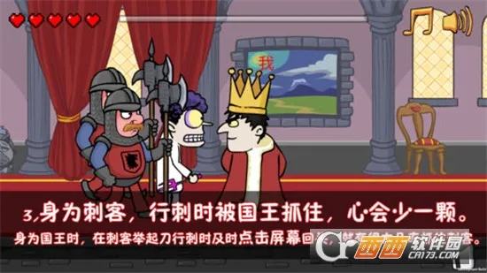 《我要当国王2.0版本》是一款结合暗杀与策略经营的休闲益智游戏。玩家在童话皇室背景中,可当刺客刺杀国王夺位,或成国王防他人行刺。有3D卡通画风,多种结局,大量关卡,能缓解压力,带来脑力激斗体验。