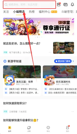 2、首页搜索框支持查找游戏、用户昵称及社区发布的各类图文内容。