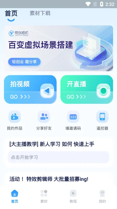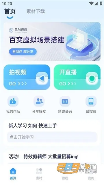 如果你想在快手上进行直播,易创相机是个不错的选择。它是一款实用的相机拍照软件,以虚拟场景为核心。软件内置丰富模板与特效,支持一键切换电商、教育、娱乐等多场景,结合美颜滤镜及弹幕互动工具,能助力你快速打造高人气直播间。它具有无绿幕AI抠像功能,采用先进AI技术实现精准人像抠图,无需专业设备就能完成虚拟背景合成。其高清画质输出,支持高分辨率拍摄与导出,保障内容细节清晰、色彩真实。还能跨平台分享作品至快手等社交平台,扩大传播范围。而且界面简洁直观,有零基础教程与24小时客服支持,新手也能轻松上手。有了它,你可以轻松搭建专业级直播间,让直播更具吸引力,解决你在快手直播中场景搭建等问题,带来更便捷高效的直播体验。