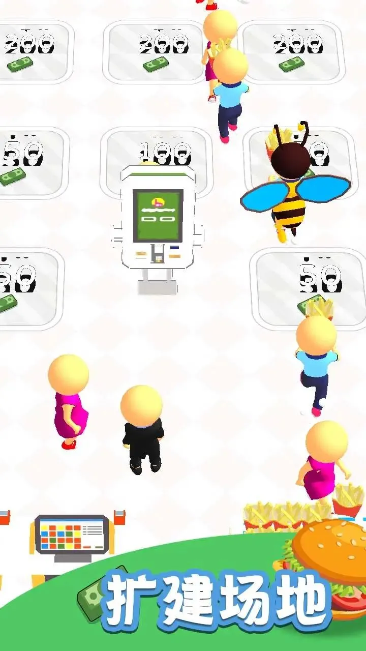 3、能升级装饰,管理卖场规模,容纳大量顾客,还能照顾好顾客,打造繁华的快餐店。