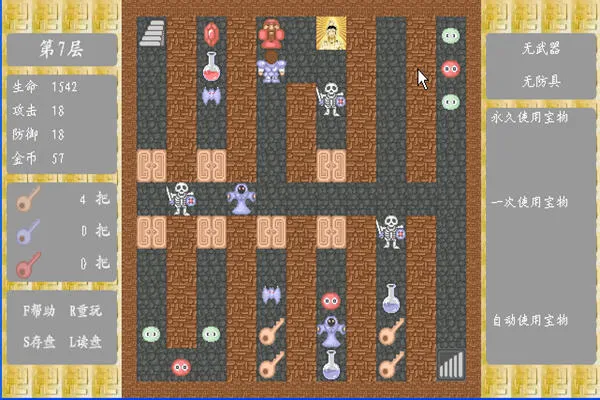 非线性探索与资源管理,魔塔布满分支路径和隐藏房间,资源有限,鼓励玩家反复尝试优化路线。
