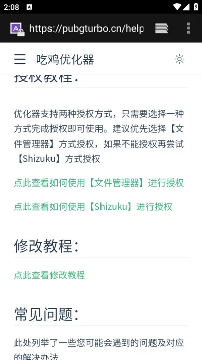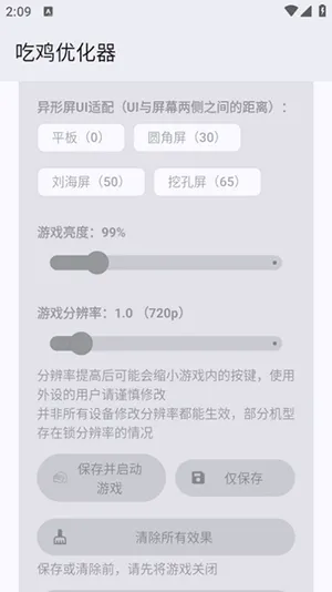 吃鸡优化器(游戏画质优化)是专业手机游戏优化工具,兼容多数场景,能一键优化画质。提供丰富选项可自定义,安装包小巧、操作简便、兼容性强、稳定性高,还能提升帧率、优化网络,另有常见问题解答。