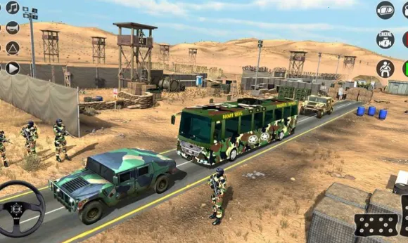 陆军巴士模拟器巴士驾驶2026官方正版是3D画风模拟驾驶游戏,玩家化身军用巴士司机,在复杂环境完成运输任务。有动态天气、多样场景和丰富模式,支持离线,操作简单,能升级改装车辆,喜爱驾驶类游戏的玩家可下载体验。