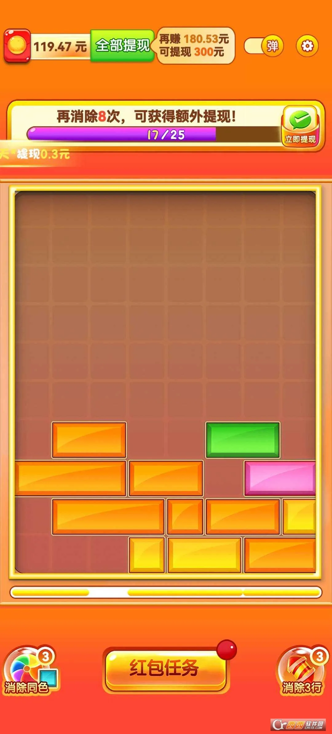 想知道“金猪送福下一句是什么”?玩金猪送福游戏就能轻松找到答案啦!这是一款超有趣的休闲闯关游戏,操作简单,点点屏幕消除方块就能闯关拿红包。它玩法多样,有普通、时间、挑战、颜色等模式,多个关卡难度各异。进入关卡后留意倒计时,多角度消除能加快速度,熟悉规则还能体验多人模式。游戏画面丰富,色彩冲击感强,场景美轮美奂,还有炫酷特效。动感音乐超带感,让人积极性满满。红包奖励实在能直接提现。它适合人群广,老少皆宜,不限制时间地点,随时能玩。游戏里还有神秘道具助你通关,隐藏彩蛋惊喜连连。既能满足你对趣味游戏的追求,又能让你在玩乐中找到答案,快来下载体验吧!