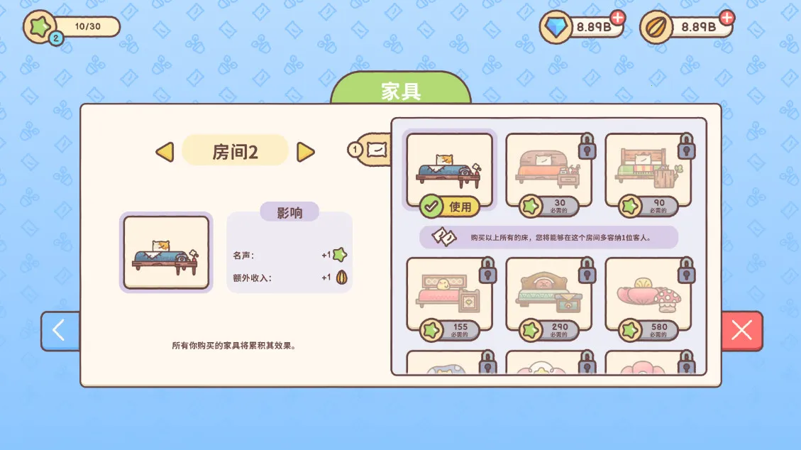 3、进入商城界面,我们需要解锁床位,并添加床铺,