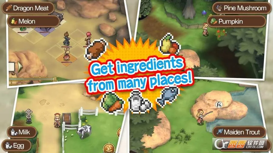 3. 食材获取充满探索性,藏于地图角落或怪物身上,做出独特美食吸引客人。
