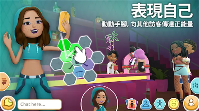 它的特色超多!能自定义3D角色,用海量服装配饰等打造独特风格;还能定制装饰房间,按喜好布置。社交方面也很出色,能和其他玩家聊天组队,一起探索酒店找秘密,参加主题活动。玩法简单易上手,进入游戏后能轻松分配角色,自定义外貌昵称,在酒店自由探索,比如去超市买衣服。操作时点击屏幕控制角色行动,点击门能去大厅,还有表情可随时换心情。快来下载,开启你的虚拟现实精彩生活吧!