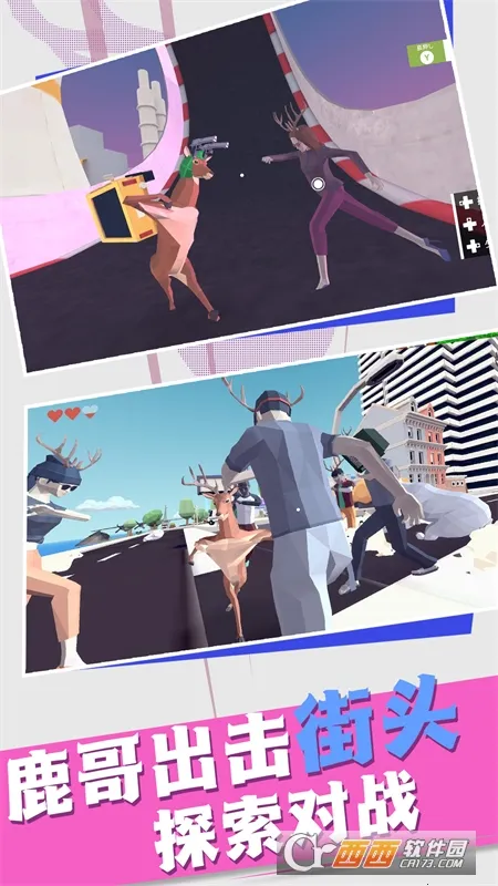 这款游戏玩法独特且充满乐趣。你能操控角色在场景中自由探索,完成诸多任务并解锁更多挑战。游戏以动物乱斗为主题,在城市中展开冒险。**鹿角可升级进化**,变得愈发强大,助你肆意捣乱。你能模拟鹿在城市自由探索、搞破坏,还能操控其用鹿角撞击人类甚至驾驶车辆,过程中要小心躲避警察追捕。游戏画面采用像素卡通风,角色样式丰富,武器类型多样,能让你尽情享受破坏和解压的快感,是一款值得尝试的游戏。