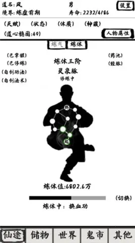 3. 丰富修仙细节:融入诸多契合修仙题材的细节设计,像功法奇遇、自创,经脉穴位修炼等,带来沉浸式修真体验。