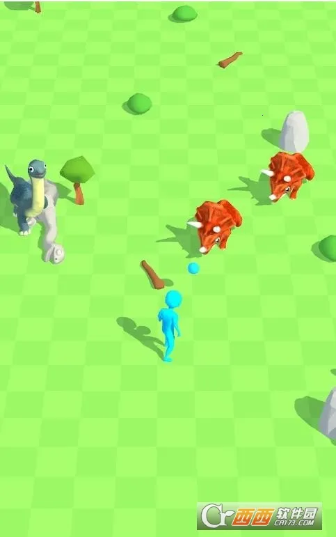 1. 可选择各种小型恐龙部落,在宽阔平原狩猎,随着狩猎成功次数,恐龙体型会增长。