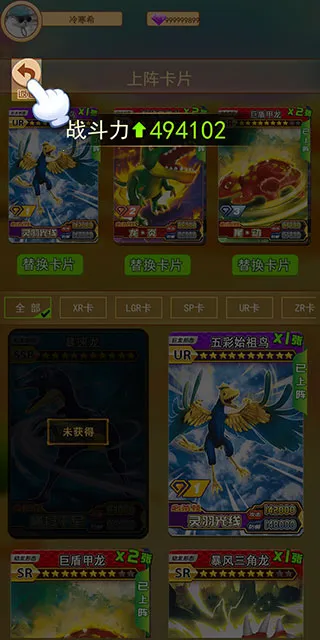 8、卡片已经按战斗力为我们排好了顺序,只需要点击第一张即可。