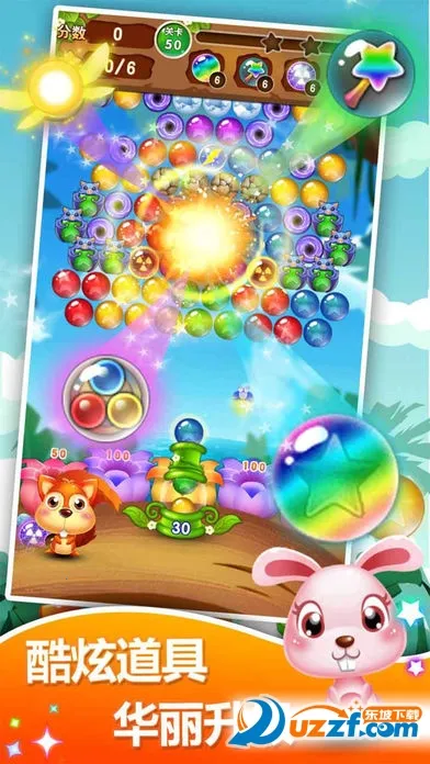 2、道具丰富:拥有各种特殊泡泡和强力道具,像彩虹泡泡、炸弹泡泡、魔法刷等,还有强大助推器,助玩家轻松消除泡泡,闯关更顺利。