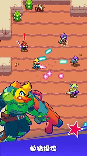 单指易操控:采用易上手的单指操控方式,玩家能轻松驾驭游戏,移动与射击一根手指同步掌控,还有划动屏幕快速闪避机制,竖屏设计方便单手控制,随时随地畅享游戏乐趣。