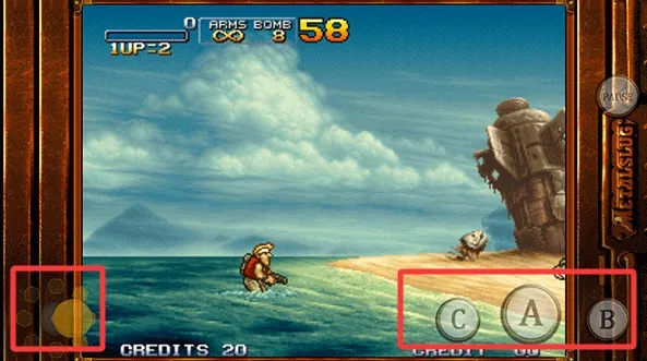 4、进入游戏后,通过左侧屏幕滑动控制移动,右侧A键攻击、C键投掷手雷、B键跳跃。熟练运用这些按键是顺利闯关的基础。