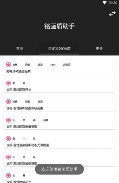 铭画质助手2026官方最新版本是提供游戏画质助手的平台,能改善视觉体验,有强大辅助功能。可优化画质、调节分辨率等,操作简单免费,还具备图像质量、性能优化等特色及多样功能。
