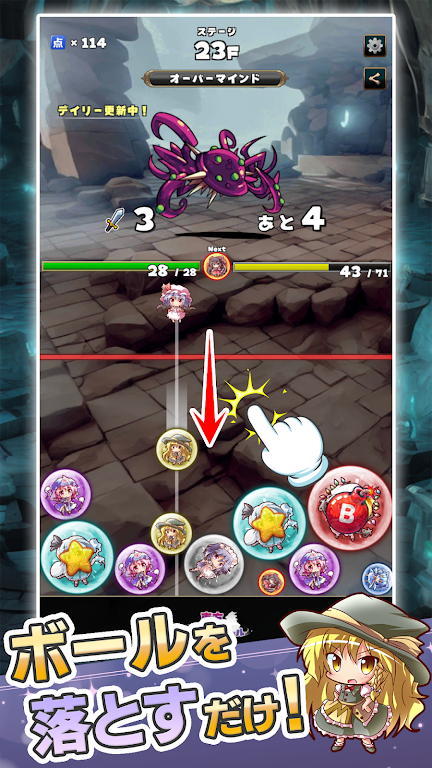 东方合并球是一款益智游戏,类似西瓜游戏的落物解谜玩法,添加战斗策略元素。玩家连接相同角色的球可使其变大伤害敌人,球越过红线会受敌攻击,通过合并球来打败敌人。
