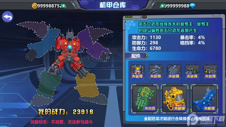 1. 机甲形态丰富:恐龙可变形为机器人、3D真实恐龙及人形状态,在模拟城市自由作战。