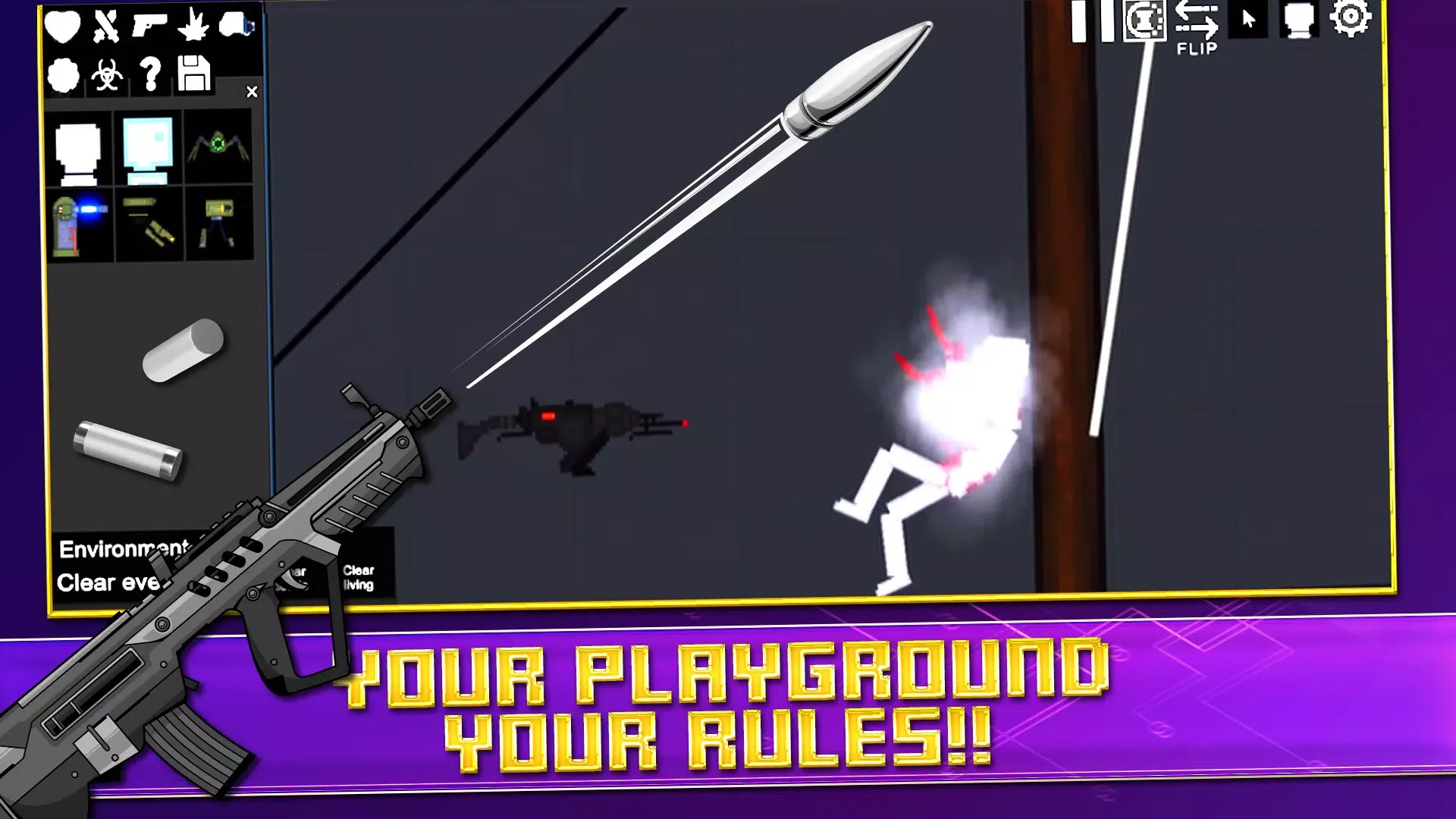 2. 有种类繁多的奇特工具与高科技武器,可尽情设计测试并摧毁。