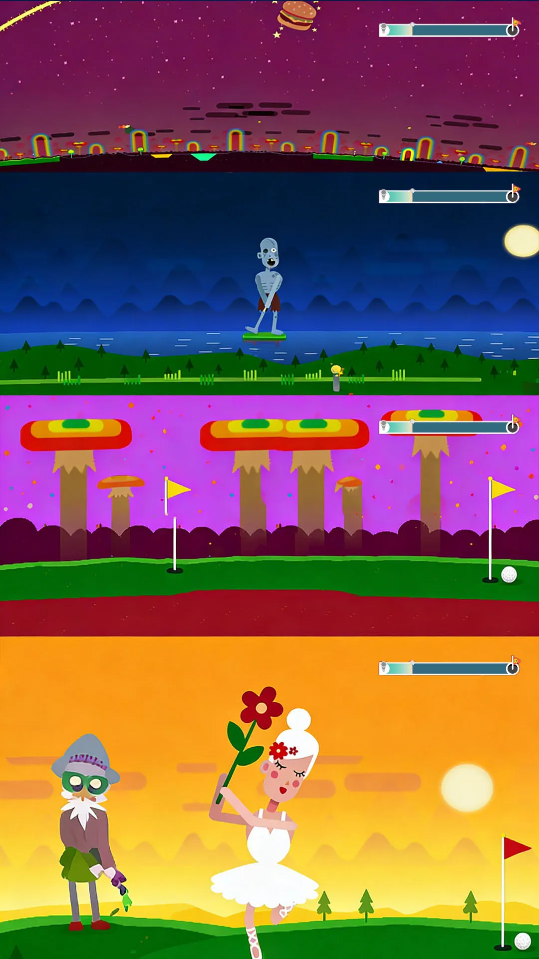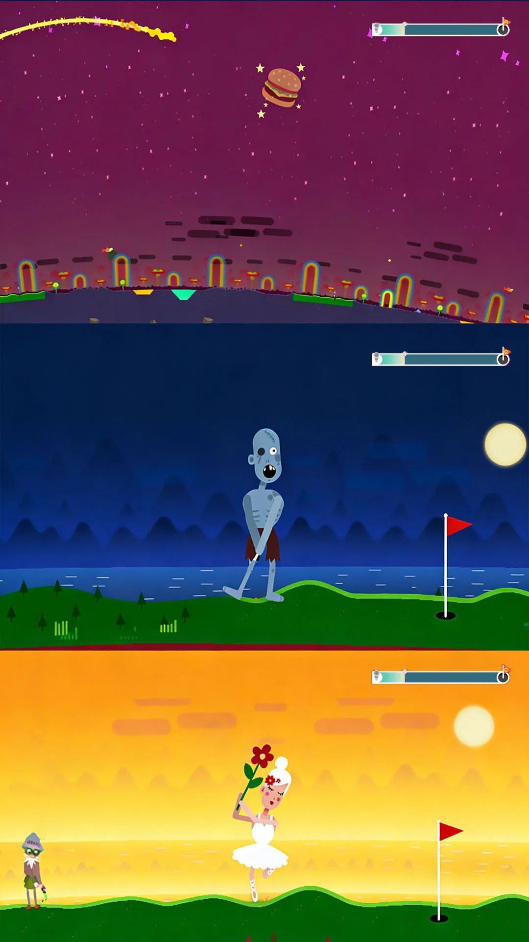 2. 玩法新颖,不追求固定进洞,以飞行距离为目标,让游戏充满新鲜感,不枯燥。