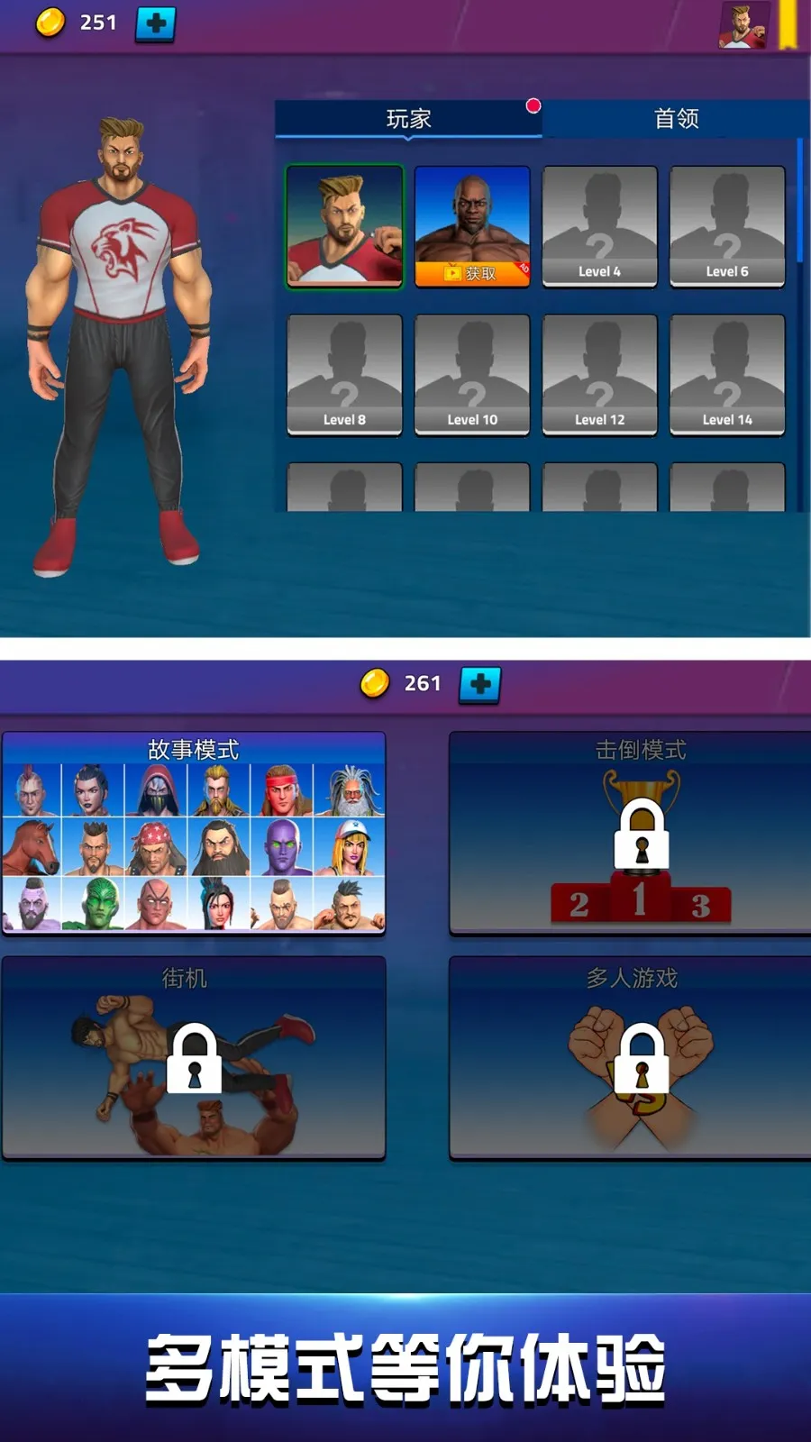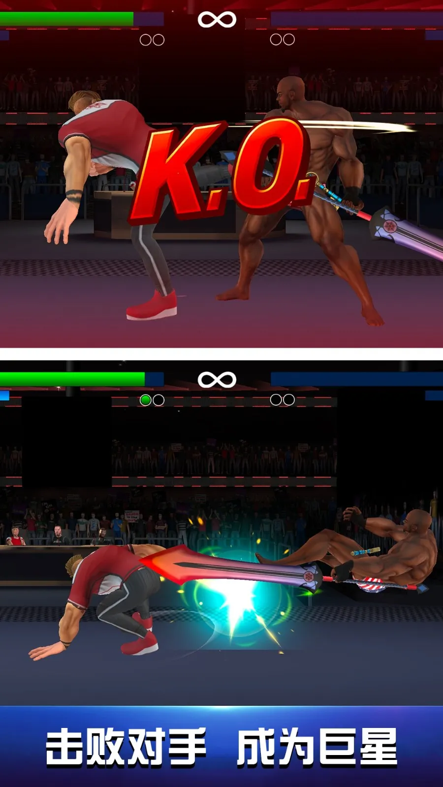 游戏中有多位英雄角色可供解锁,每个都有独特背景故事和战斗风格。你可以选择喜欢的英雄进入擂台,根据对手情况灵活挑选。战斗时,合理衔接拳击、踢腿、摔跤等攻击手段,耗尽对手血量就能获胜。随着关卡推进,还能挑战更高难度对手提升实力。