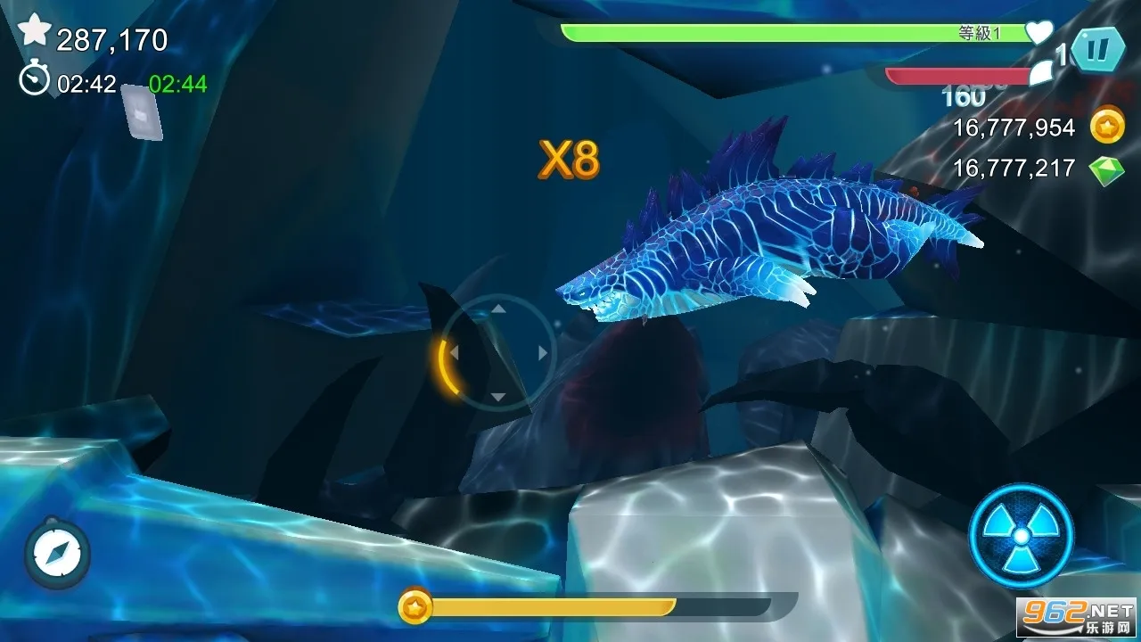 2. 操作方式独特:采用重力感应,控制鲨鱼在海洋自由觅食。