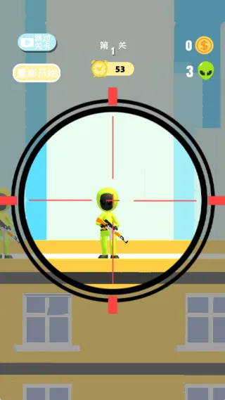 4. 助力道具的运用:自由使用专属助力道具,能快速定位隐藏外星人或强化狙击能力,化解搜寻与射击卡点难题,轻松攻克高难度狙击关卡。