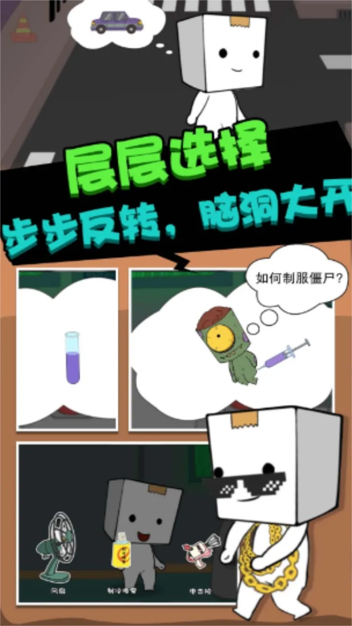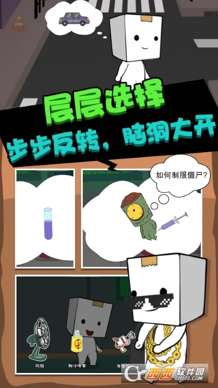丧尸启程安卓版手机版是冒险逃生类丧尸手游。小镇被丧尸病毒笼罩,纸盒人醒来孤立无援。游戏融合多种玩法,画面卡通明亮,无恐怖成分。玩家要权衡选择,助纸盒人躲避追击、逃离小镇,还有多重结局等你探索。