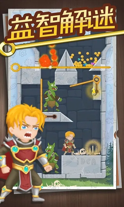 英雄密室脱险安卓版是一款解谜冒险游戏。玩家化身勇士或王子拯救公主,在卡通世界中,通过拉动针杆调整位置克服难关。有密室逃脱、地牢探险等玩法,关卡多样,操作简单,适合喜欢脑筋急转弯的玩家。