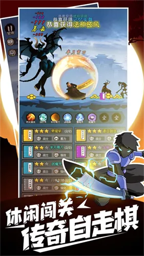 3、多样玩法体验:融入自走棋元素,还有挂机放置玩法,离线可获收益,地图找宝箱得技能资源,每关都是新挑战。