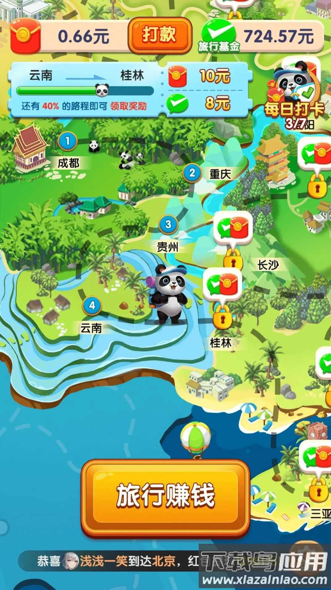 疯狂美食城是一款融合合成消除玩法的新颖游戏。玩家通过合并食材解锁更高级美食,参与挑战有机会领现金奖励。它以环球旅行为背景,有类似旅行主题的消除机制,连接相同物品消除积累积分与红包。每个关卡有时间限制,要清空目标拿够积分过关,还有多种道具技能助通关。除经典模式,还有副本挑战。新用户初始奖励有限,按引导完成前几关可提现0.1元,后续可能提0.3元起,关卡奖励稳定,坚持玩有机会获更高提现额度,能让玩家在休闲时体验独特乐趣与收获惊喜。