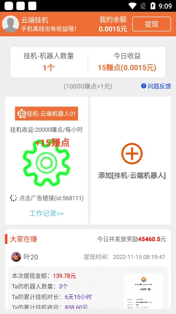 云端挂机最新版2026官方最新版本是一款高效便捷的挂机赚钱应用。提供多样任务,支持自定义挂机时间,无收入上限,有离线挂机、root权限等功能,无广告干扰,正规安全,能助用户轻松赚取收益。