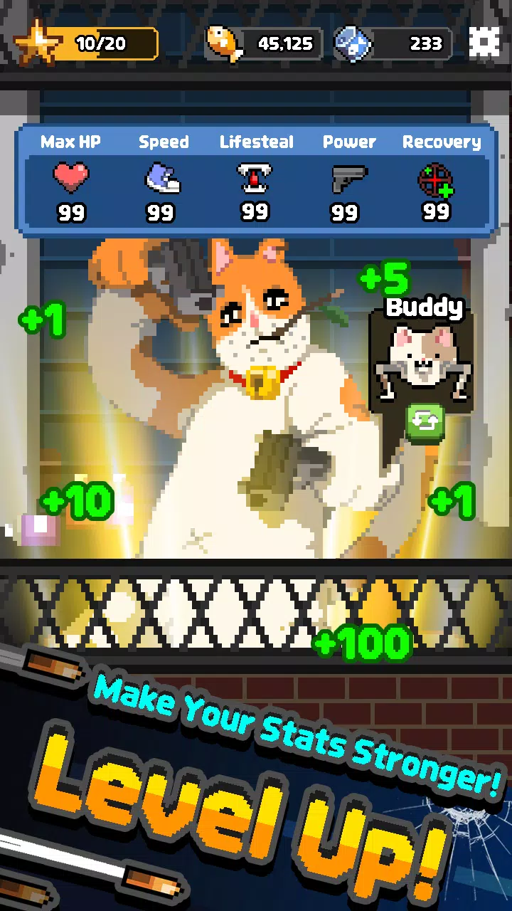 猫威克是一款极具特色的游戏。它有着震撼的视觉效果,能让你看到长着肌肉腿的鱼等奇葩形象。游戏设定在宁静车库,面对燃烧油桶和疯狂奔跑的鱼的围攻,生存射击玩法紧张刺激。告别无脑点击,需掌握按住并松开来精准瞄准,每颗子弹都关键,一枪能扭转战局。而且还能解锁各种特别的伙伴并肩作战。整体体验独特又有趣,给玩家带来与众不同的游戏感受,让人沉浸其中,享受这场酷炫古怪的冒险之旅。