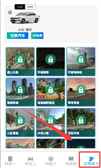 2、掌握理论后进入科目二场地训练,在倒车入库、坡道定点等关卡中,可先观看3D演示了解要点,再通过触摸屏操控方向盘、油门与刹车进行实践,培养方向感和车距判断能力。