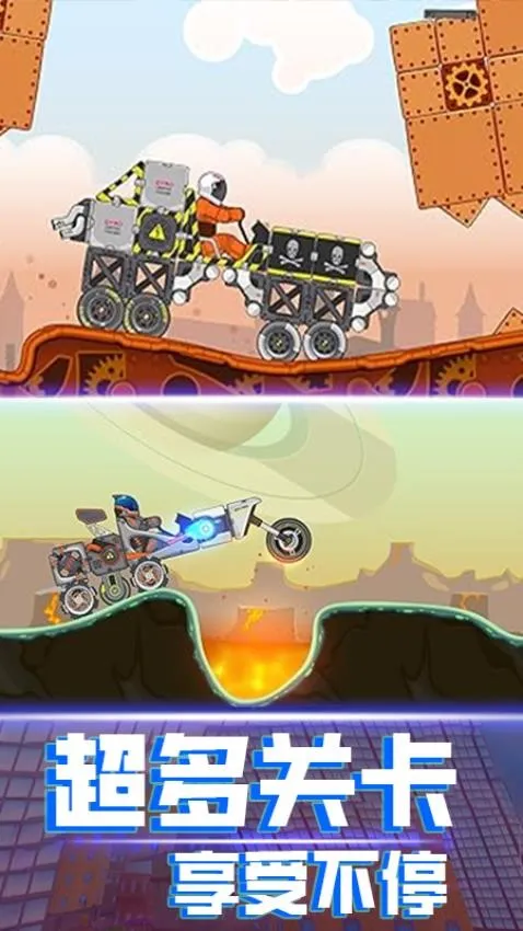 1. 丰富奖励:开局面对复杂太空环境挑战,灵活控制车辆通过关卡就能获取丰富奖励。