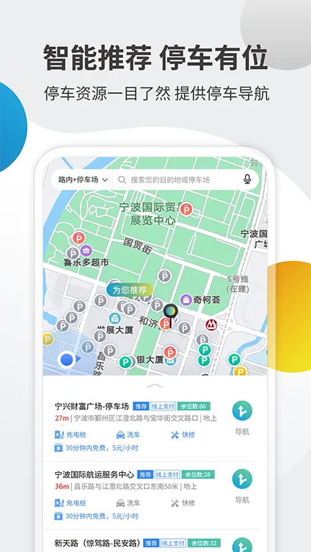 2. 智能推荐:能一键为您推荐附近的停车场,找停车位更智能化。