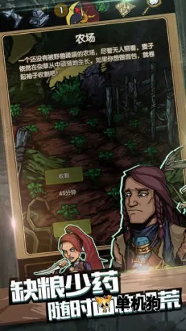 2、丰富玩法:可种植植物、森林探险、挖矿石,还能收集物资应对饥荒、疾病与天气变化,采用回合制战斗搭配不同职业技能。