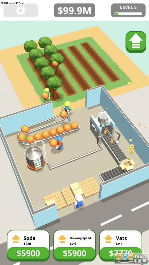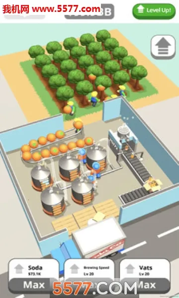 想知道汽水工厂是怎么制作汽水的吗?来玩这款超有趣的模拟经营游戏《汽水工厂》就知道啦!在游戏里,你能体验到完整的汽水制作流程。先在果园种桔子,收割后让它们在大银缸发酵,再通过管道进入瓶子,装箱送上货车。这里有超过20种不同能力的机器,能生产90多种产品,包括家具、智能手机和汽车等。你可以模拟生产超百种饮料,不同饮料价格各异,出售它们就能赚取利润。还能成为老板管理工厂,离线也能赚钱。通过点击就能快速生产,出售公司能让收益最大化。游戏玩法简单有趣,操作轻松,看着工人和机器运转,感受经营工厂的乐趣,非常适合打发时间。快来下载,亲自体验汽水工厂的制作过程,打造属于自己的汽水帝国吧!
