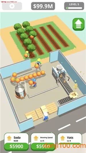 想体验当汽水工厂大亨的感觉吗?这款模拟经营游戏超好玩!在游戏里,你能经营一家汽水工厂,从果园种桔子开始,收割后让其在大银缸发酵,再通过管道装瓶、装箱、装车,赚取利润扩大工厂规模,成为苏打饮料亿万富翁。这里有超过20种不同能力的机器,从普通到传奇级别。能生产超过90种产品,像家具、智能手机和汽车等。哪怕离线也能赚钱,点击就能快速生产,还能出售公司实现收益最大化。而且能模拟生产超百种饮料,不同饮料价格各异,出售就能赚利润。你可以不断扩大生产规模,引进新的饮料生产机器和流水线。游戏玩法简单有趣,操作轻松,看着工人和机器运转,特别适合打发时间,喜欢放置游戏的朋友一定不要错过,快来下载体验当大亨的乐趣吧!