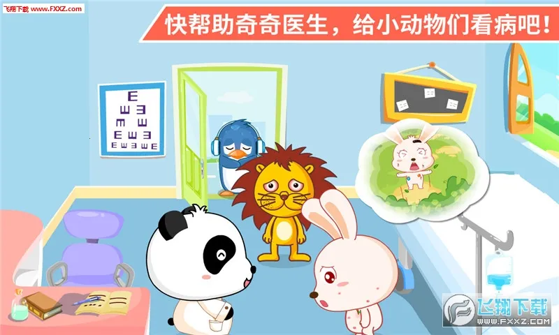 宝宝医院是宝宝巴士旗下儿童启蒙教育游戏,模拟真实医院场景。小朋友扮演医生治疗小动物,可克服看病恐惧、培养生活习惯,还有7种玩法、6个小病人、11类互动,寓教于乐。
