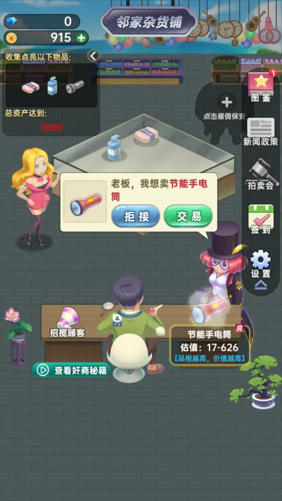 奸商模拟器是模拟经营游戏,玩家化身商人,招揽顾客维持店铺经营。通过讨价还价收购商品,根据品相判断价值,交易成功的商品可收藏。还能雇佣员工、解锁新店铺,体验多种玩法,在经营中积累财富。