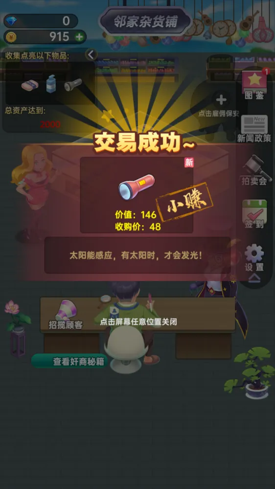 3、丰富玩法解锁:随着总资产增加,陆续解锁新闻政策、拍卖会等新玩法,增添游戏乐趣。
