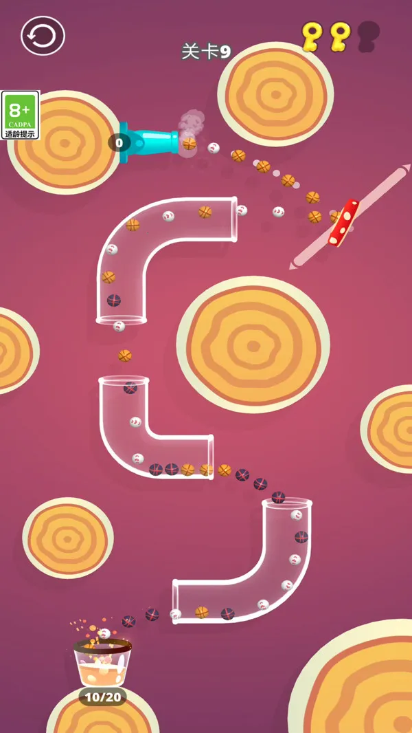如果你想玩一款轻松解压又有趣的游戏,那这款弹球射击游戏绝对适合你!在游戏里,你能用手指拖拽旋转关卡里的障碍物和机关,改变弹珠发射后的运动路线,目标是让弹珠滚入并填满所有指定的桶。每成功装满桶完成一关,就能解锁新大炮,新大炮会射出不同数量或特性的弹珠,增加玩法和挑战。游戏包含各种物理互动元素,像弹簧、传送带、风扇等,灵活运用它们引导弹珠,乐趣无穷。它的弹珠反弹滚动轨迹超符合现实,手感自然流畅,瞄起来特别带感。而且没有固定解法,全靠即时移动场景里的东西调整弹珠路径,想法多就能玩出各种花样。收集元素也是亮点,不断解锁造型功能各异的大炮,还有超稀有的绝版大炮等你来发现。这游戏上手零门槛,不管啥时候,点开就能玩,几分钟就能搞定一关,特别适合碎片时间玩,既能解压又能动脑,赶紧来试试吧!