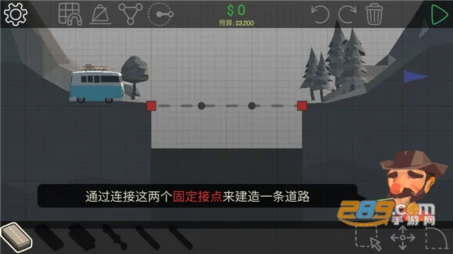 1 多种材料建桥:可使用木头、钢铁、钢缆等不同材料,每种材料强度与价格各异。