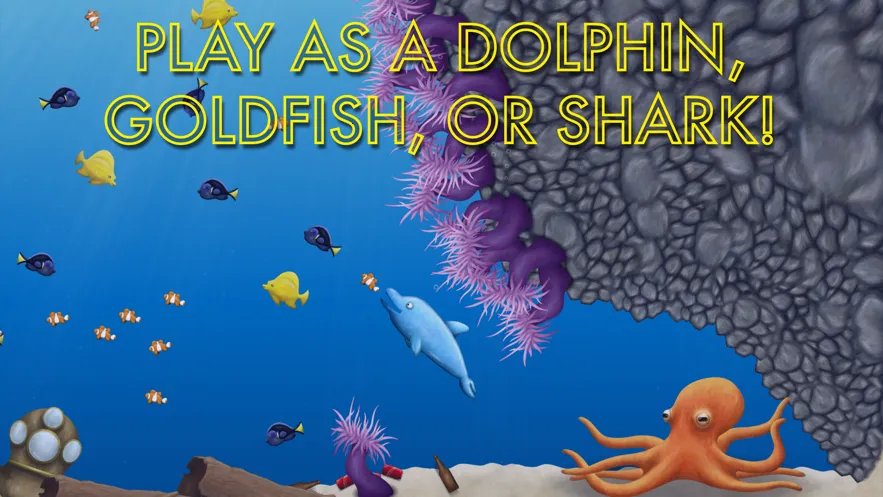 1. 多种可操控角色:玩家能扮演金鱼、海豚和鲨鱼等不同动物,每个角色都有独特的起始状态和成长路径,带来丰富多样的游戏体验。