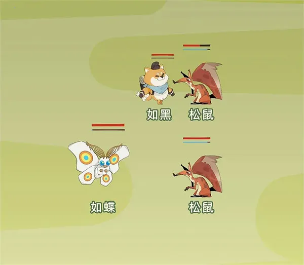 在战斗时,分为血条和行动条,当行动条满了之后即会攻击一次,血条没了之后就会倒地。让你的徒弟和你全部死亡之后,就会概率结束游戏。