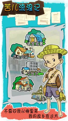 苦儿流浪记最新手机版是模拟经营类安卓游戏,以黑暗旧社会为背景。玩家扮演苦儿,靠思维智慧冒险流浪、经商打工求生。有5个场景、10多种工作,考验思维,画面清晰音乐轻松,还有关卡、画质优化及bug修复。